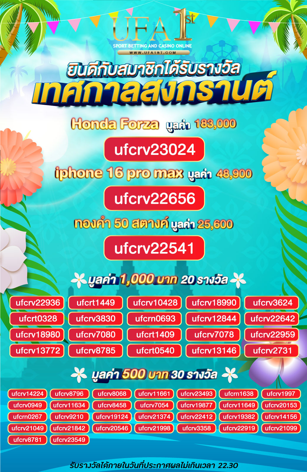 เงื่อนไขเป็นไปตามบริษัท UFA1ST กำหนดเท่านั้น